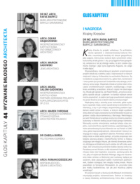KAPITUŁA KONKURSU DLA MŁODYCH ARCHITEKTÓW W dniu 21 listopada 2016 r. w Warszawie w Pałacyku Zamoyskich przy ul. Foksal 2, siedzibie Zarządu Głównego Stowarzyszenia Architektów Polskich SARP, odbyło się posiedzenie Kapituły IV edycji Konkursu dla Młodych Architektów. Organizowany przez miesięcznik "Builder", KdMA jest ogólnopolską najbardziej prestiżową imprezą adresowaną do młodych przyjaciół architektury. Dr Rafał Barycz jest członkiem Kapituły Konkursu dla Młodych Architektów.